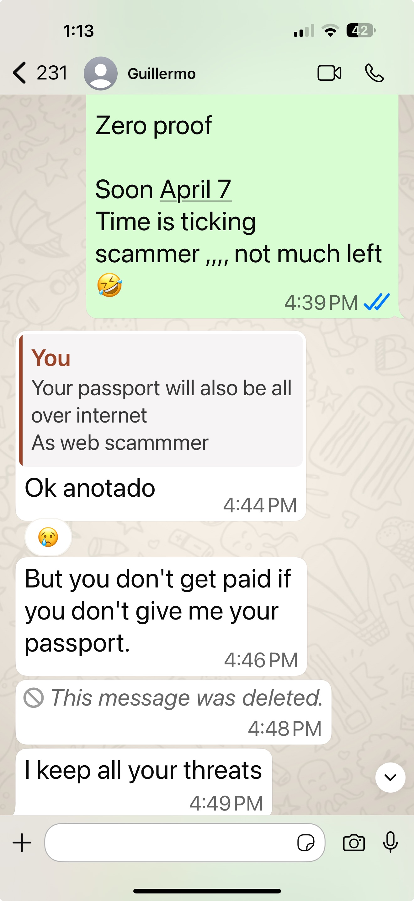 This is a known scammer w many proofs. Scammer is an Active Scammer. Be on Alert ! |