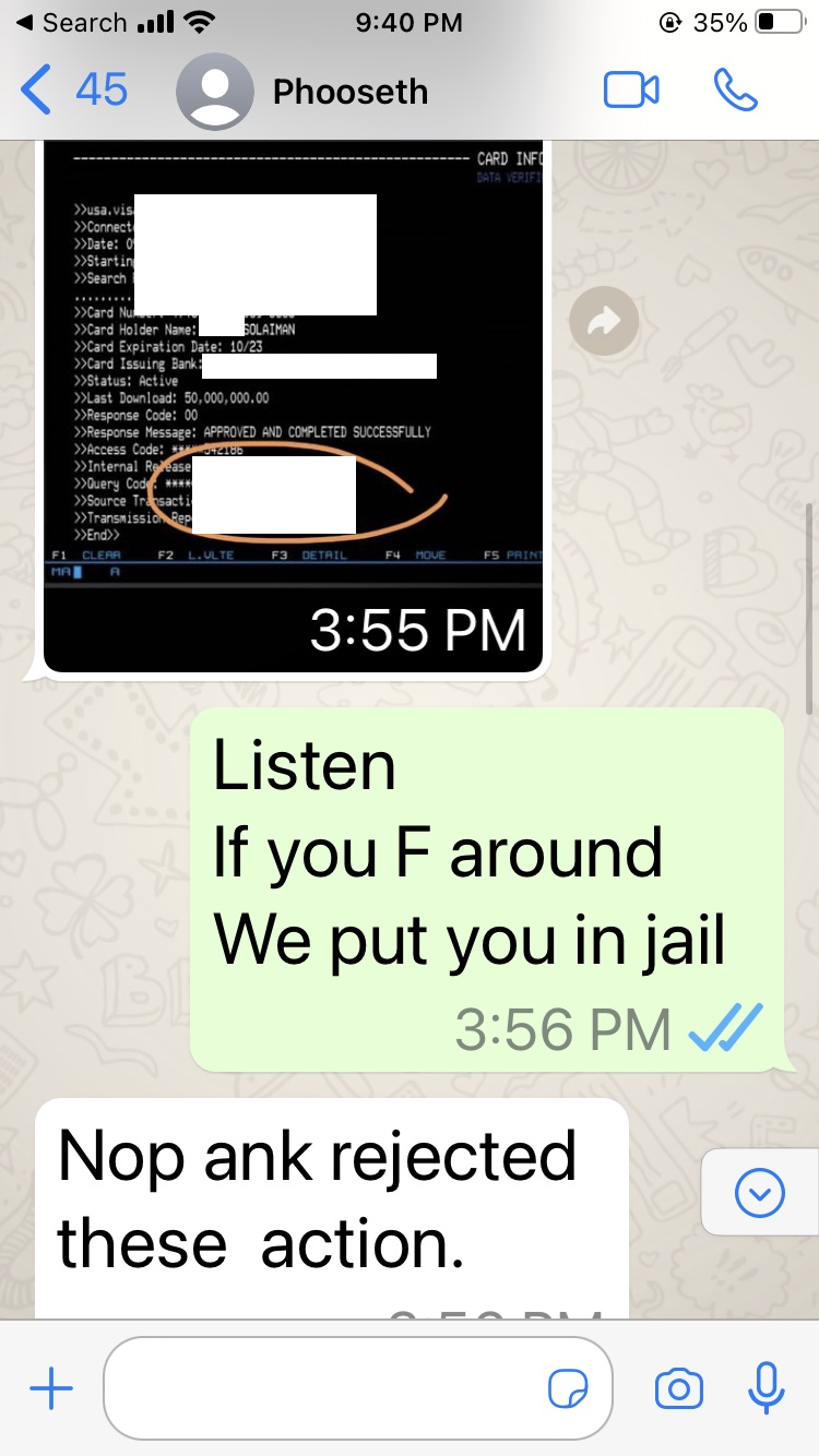 | 25 | Mr. Bulakorn Songprachakkul | SUWANNAKHARA COMPANY LIMITED | Thailand | Money Transfer | POS | Approved | This Scammer and his Associates in Kasrikorn Bank deny they run a transaction for 50MM Come up w excuses not to pay Stay away for your safety . They use SIAM Commercial bank for processing and Kasikorn bank for their payout Stay away for your safety We had to get our Funds back from top FRB and CB and report them to interpol All Crooks and Scammers ! | See Above Scammers ! Stay away for your safety | Pending |