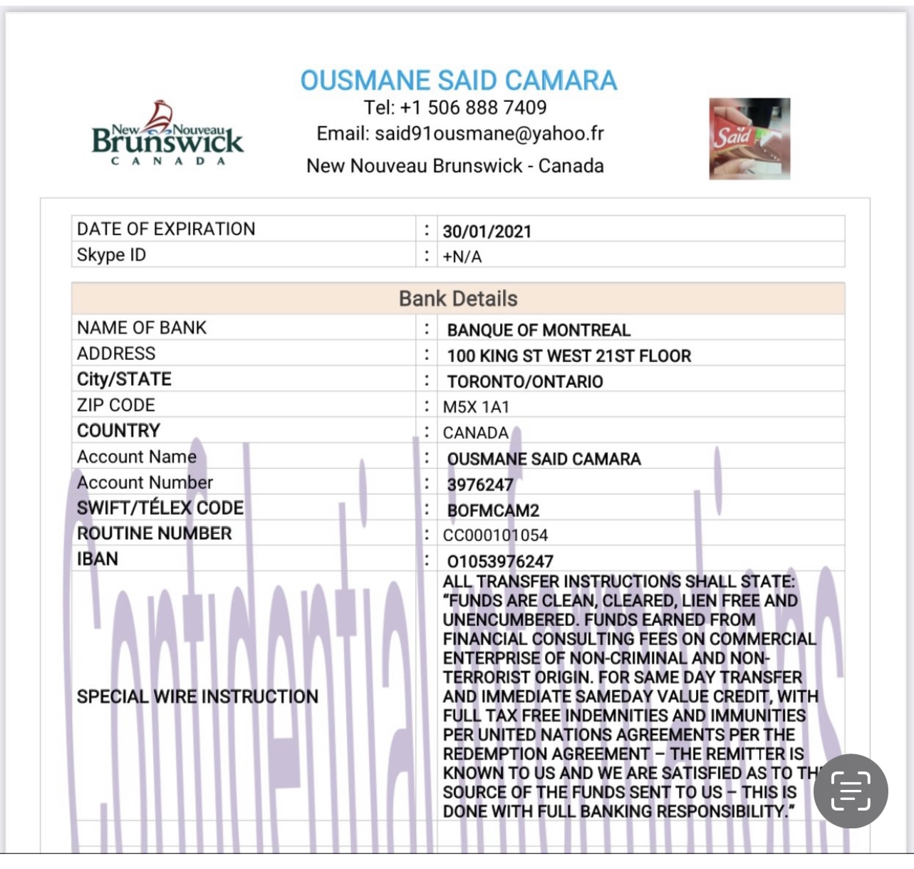 | 26 | Ousmane Said Camara | Canada | Private Money Exchange | All Misc providers Offers | Approved | 46K sent to this scammer as a trail/test. The whole time he gave excuses why he had to wait to send the funds. When he was questioned he became rude which was all a plan to try and justify why he deleted himself from the chat. He had no intention of paying the funds and never did. He steals funds to just travel around like he is successful. He is successful in scammer others only. He is African however resides in New Brunswick Canada. Do not work with this scammer. | This scammer received 46K as a test to send greater amounts. When it was time to pry he never did. He made excuses when asked where the funds were, saying he was tired or just travelled. He travels around staying in hotels whilst using others funds. He is a scammer that has no intentions of paying out any transaction. Stay away from him. |
