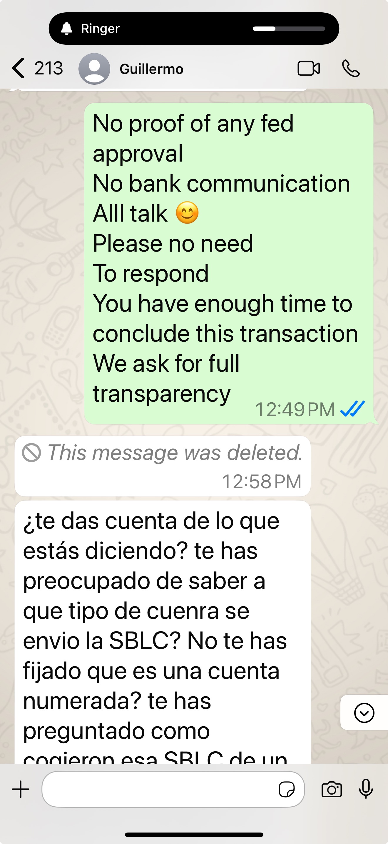 | 29 | Guillermo Gonzalesz Bautista | CIGAGSA Investment S.L. | Spain/Madrid | SBLC/ BG | SBLC/BG Monetization/Non-Recourse Loans | Approved | Fraudster: Guillermo Gonzalez Bautista Company: CIGAGSA Investment S.L. Spanish individual with a bank account in Canada and a Spanish company. This so-called SBLC monetizer has confirmed receipt of our issued SBLC and provided proof it had been received by his bank, went to trade and the funds in his bank common account ready for payout! We waited for over 6 months and still no payment from him and no response to our attorneys! For over six months, he has made excuses for not paying the client, Issuer, and other consultants involved in the deal! See below, and his excuses and stories for no payment continues as we of today! Avoid this fraudster. He also attempted to bribe us into engaging in another type of transaction with him so he could compensate us- Another Story to drag time. See the attached sample. He continually comes up with excuses, claiming that without the CIS of all parties, he cannot make the payment. A true fraudster. We will report this individual to all relevant agencies. We have evidence from other consultants to corroborate this. Just ask, and we will provide additional proof. Anyone involved in trade finance and SBLC should steer clear of this fraudster! He owes us 250 million and has paid nothing so far! One of our most recent transactions, conducted on January 3, 2025, involved a SWIFT Com SBLC issued for 500 million to the client: XXXXXXXXXXX Ltd, where the monetizer: CAGIGSA INVESTMENT SL from Spain, with a Scotia Bank Canadian receiving account, was the designated monetizer for the transaction. CAGIGSA INVESTMENT SL has fully confirmed receipt of the instrument, yet for over six months, they have refused to make our payment, offering continued delayed excuses without any proof, specifically lacking actual proof of the funds being held by the FED. We are convinced that the monetizer is profiting from the instrument and is providing excuses to avoid payment. This matter has been sent to litigation - but we must warn others not to waste their time and money on this fraudster: Guillermo Gonzalez Bautista and his company: CIGAGSA Investment S.L. | Please find the attached sample. We possess all the proofs. He has consistently ignored our attorney and has evaded responsibility like a deceitful rabbit! He claimed he wished to make a payment but required our CIS, another excuse... Exercise caution and steer clear of this scammer. He is being reported to all relevant agencies! | Pending |